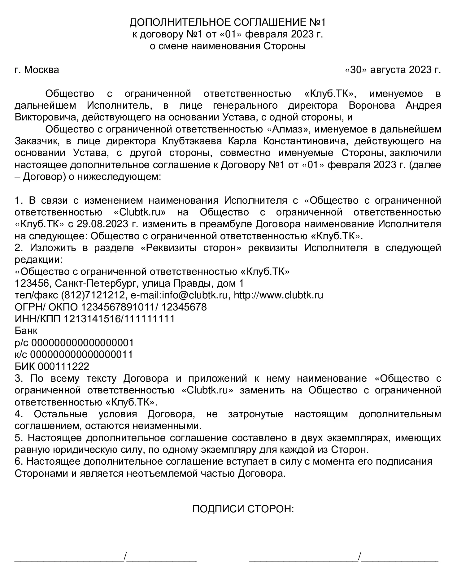 Изменение наименования: дополнительное соглашение с контрагентами