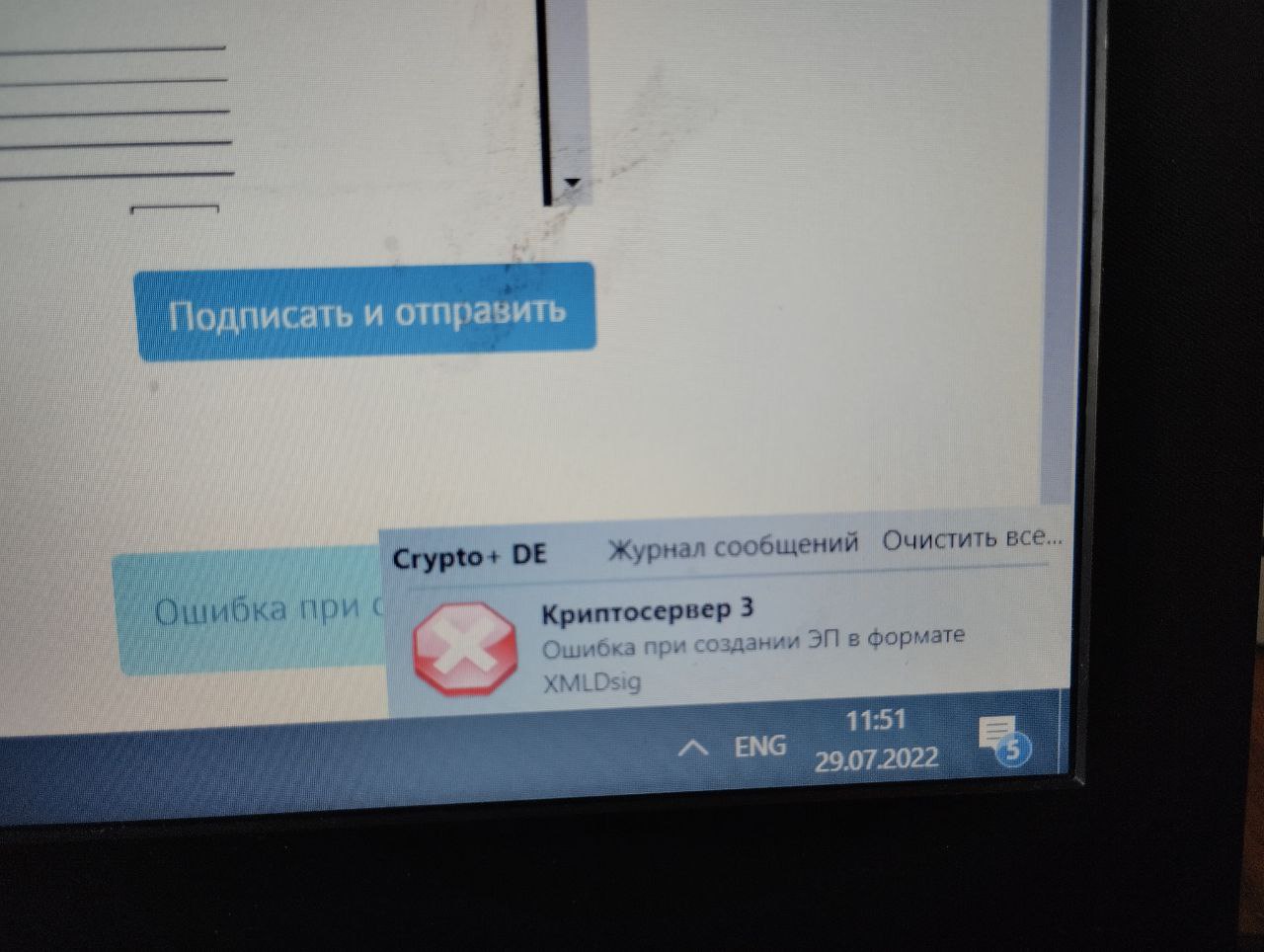 - Ошибки, возникающие при попытке подписи. Такие ошибки появляются, если программное обеспечение компьютера не настроено правильным образом или отсутствуют (или недоступны) ключи электронной подписи.
