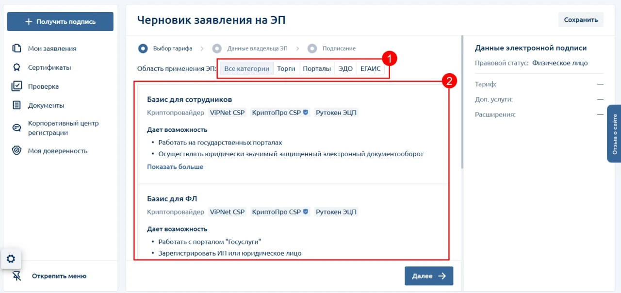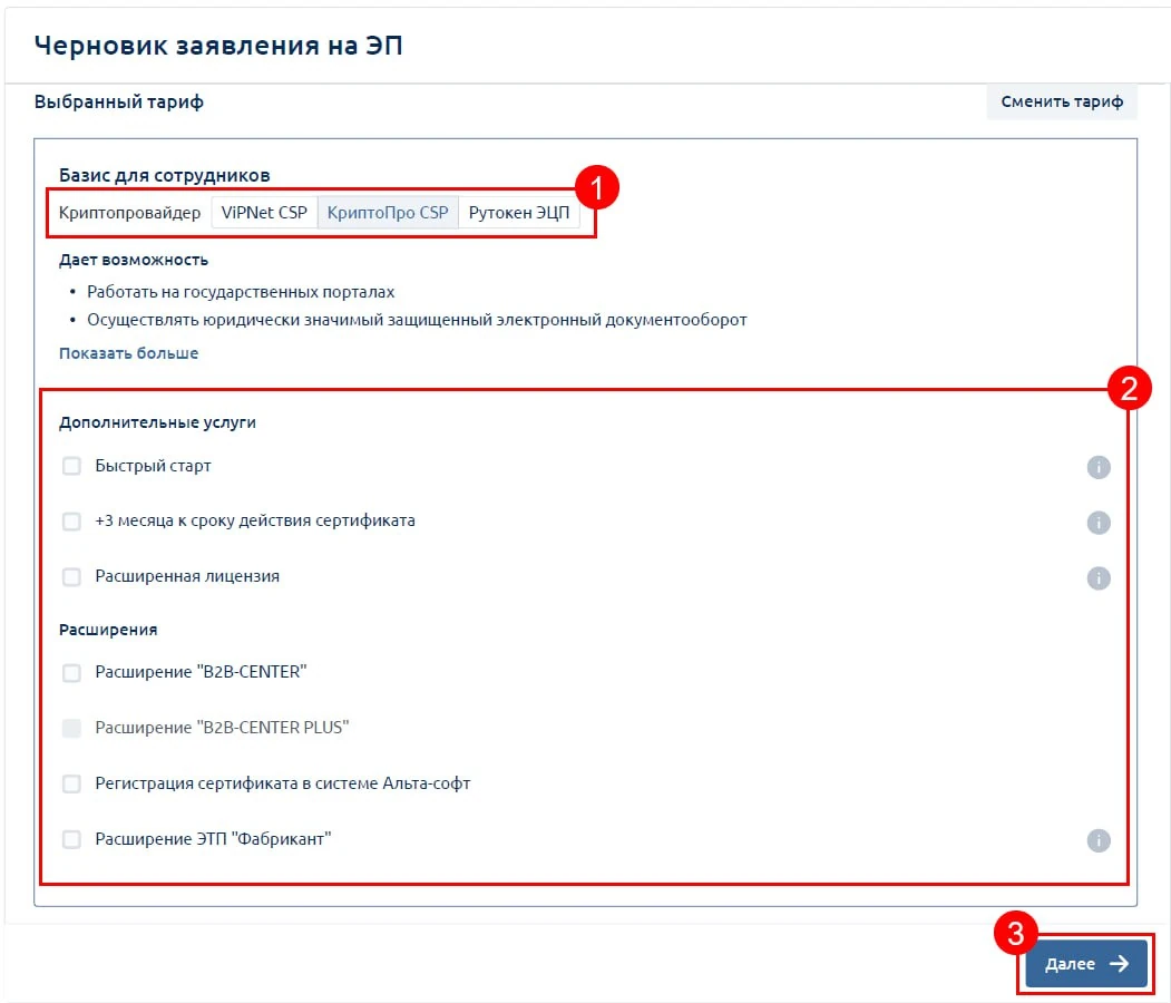 После проверки заявки наш сервис сформирует счет. Оплатите выпуск сертификата и носитель (если приобретаете у нас). Стоимость услуг удостоверяющих центров законом не регулируется — актуальные тарифы вы можете уточнить на нашем сайте или по телефону горячей линии.