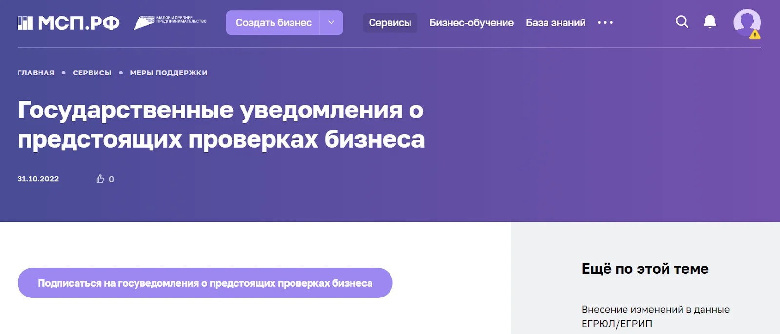 Представители малого и среднего бизнеса могут получать уведомления о предстоящих КНМ на Цифровой платформе МСП.РФ. Для подключения услуги нужно авторизоваться на сайте через «Госуслуги», перейти в раздел «Государственные уведомления о предстоящих проверках бизнеса» и подписаться на рассылку.