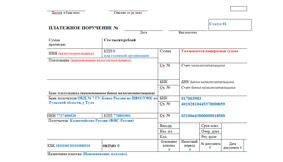 | Банк получателя | ОКЦ № 7 ГУ Банка России по ЦФО//УФК по Тульской области, г. Тула |