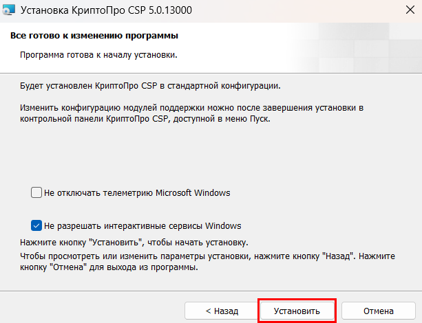 3. Добавьте недостающую компоненту в КриптоПро CSP.
