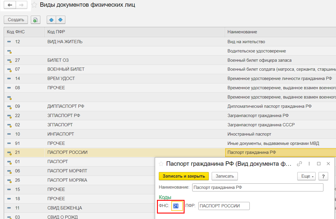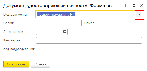 e1cib/list/Справочник.ВидыДокументовФизическихЛици нажмите клавишу Enter. - Найдите и откройте Паспорт гражданина РФ.
