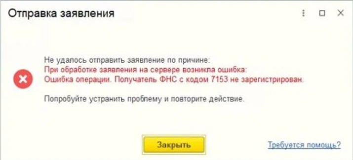 1С-Отчетность: Ошибка операции. Получатель ФНС с кодом *** не зарегистрирован