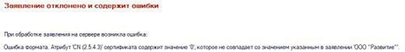 «Ошибка формата. Атрибут CN (2.5.4.3) сертификата содержит значение (), которое не совпадает со значением указанным в заявлении...».