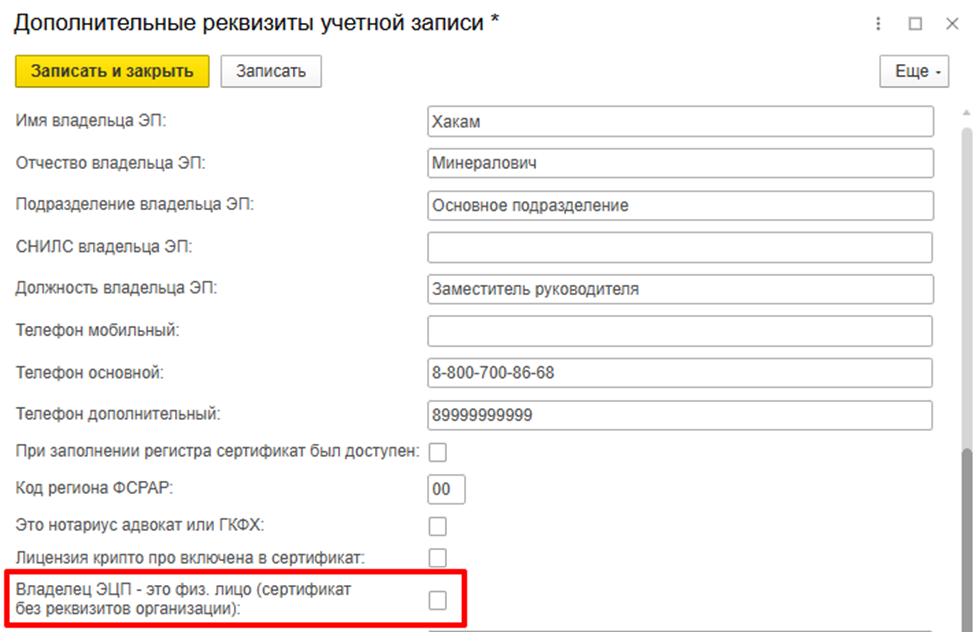 Снимите отметку Владелец ЭЦП - это физ. лицо: