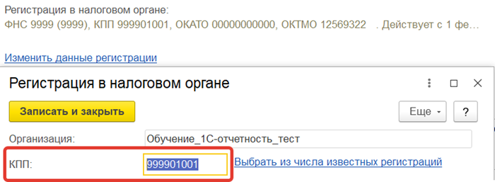 2. Нажмите на гиперссылку Изменить данные регистрации и проверьте КПП организации: