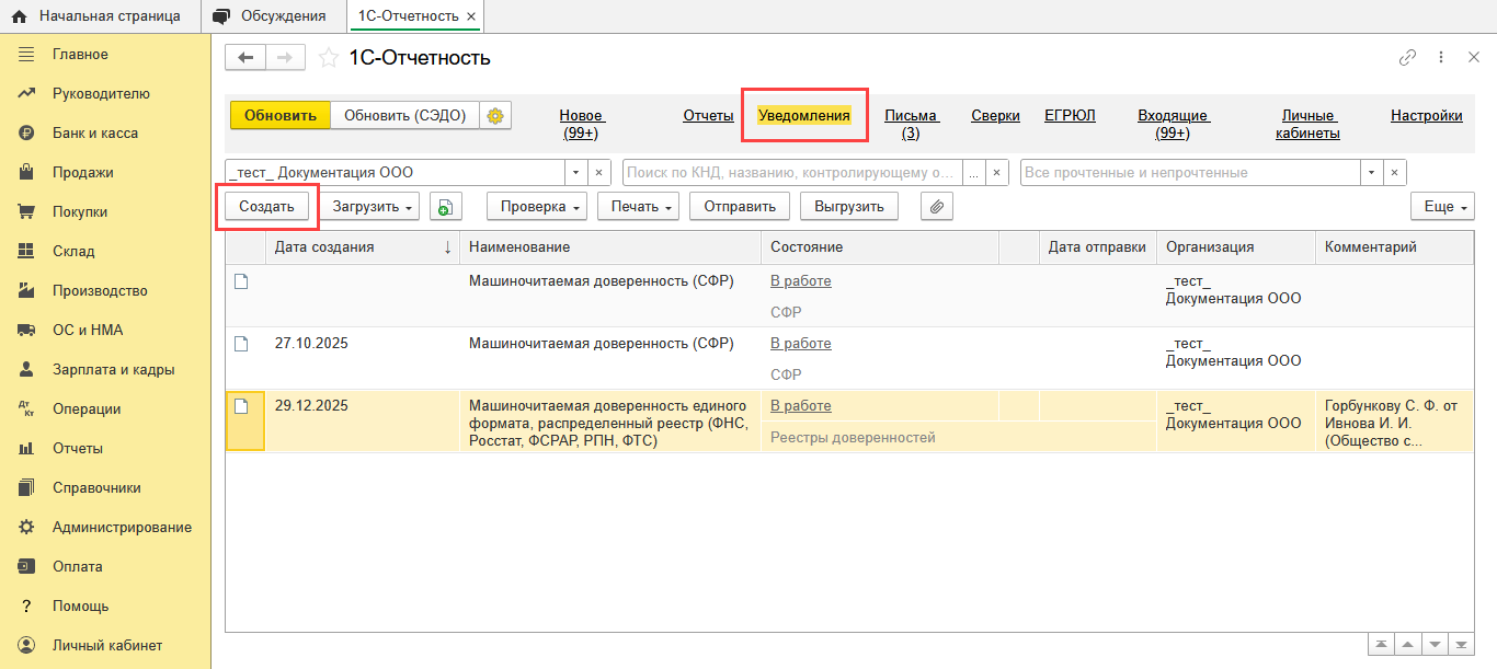 - Создание доверенности для передачи отчетности в ФНС