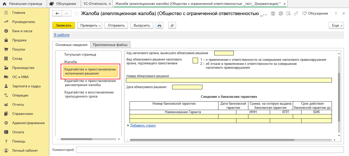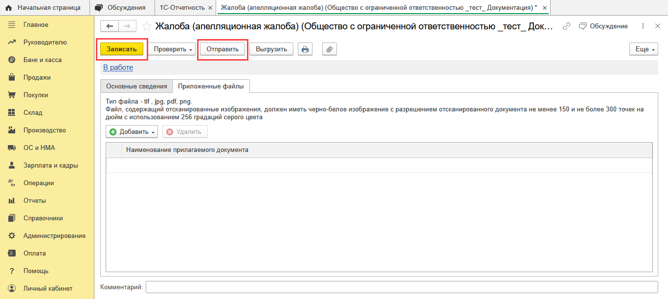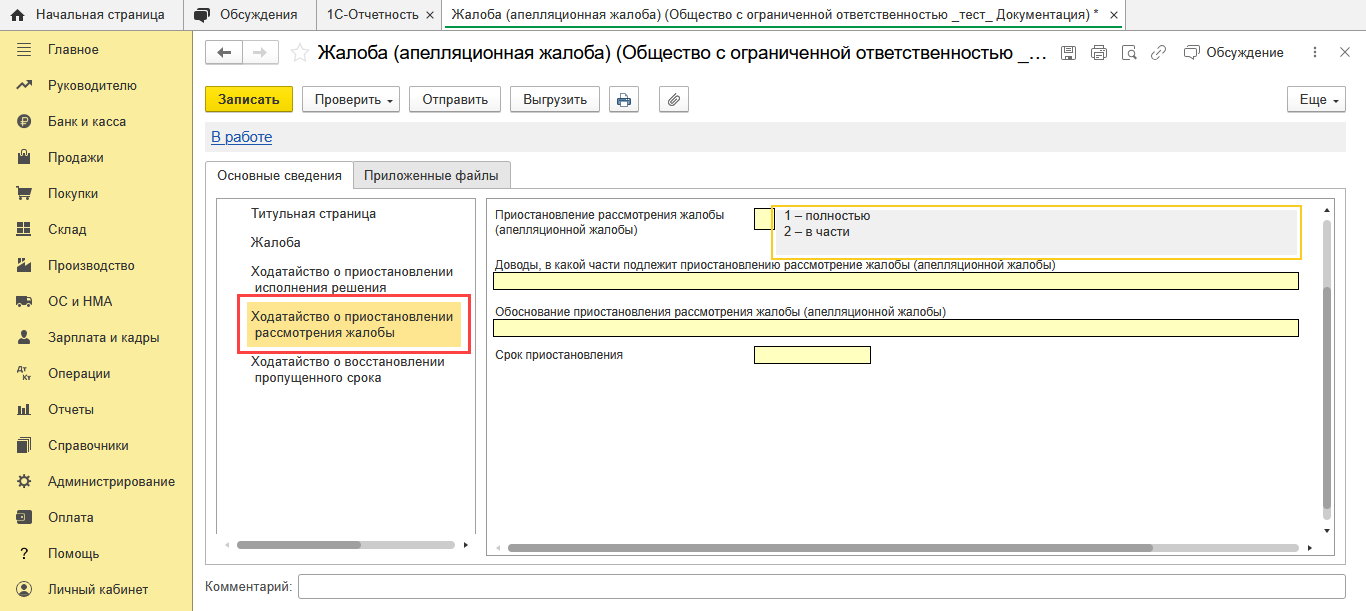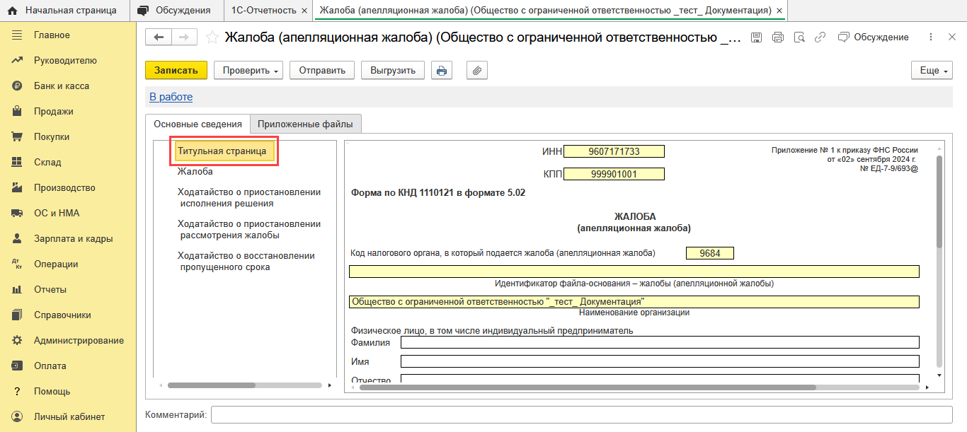 1С-Отчетность: Жалоба в ФНС