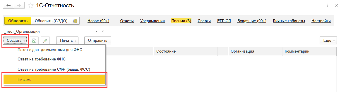 1С-Отчетность: Отправка неформализованных писем