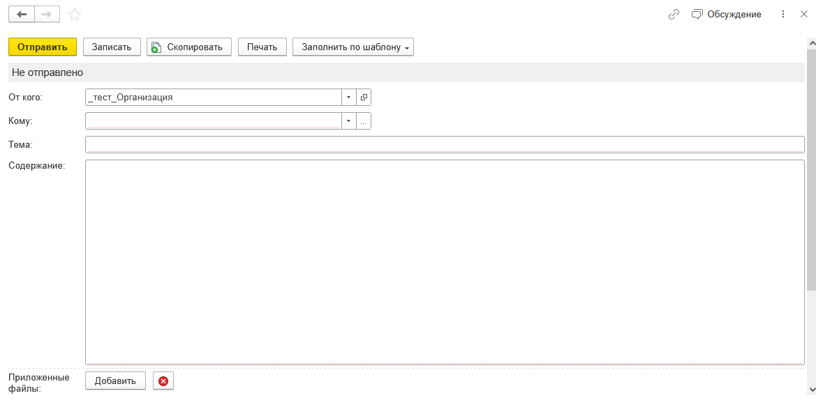 Укажите отправителя и получателя, заполните тему и содержание письма.