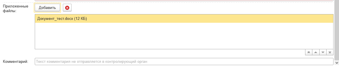 В случае отправки письма в СФР или Росстат есть возможность добавить вложение. Для этого нажмите кнопку Добавить, выберите файлы с компьютера и нажмите Открыть. После этого выбранный файл добавится в поле «Приложенные файлы»: