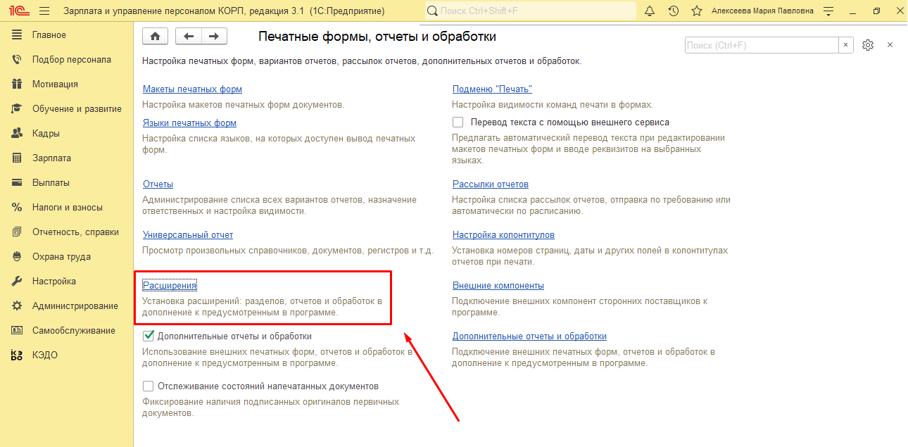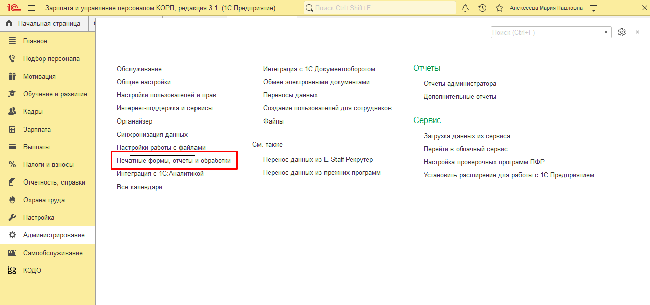 Далее выберите группу функций Печатные формы, отчеты и обработки: