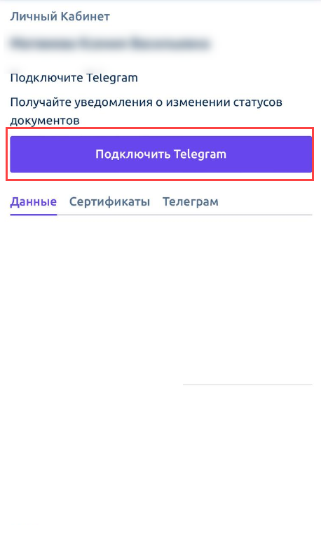 Нажмите кнопку Подключить Telegram: