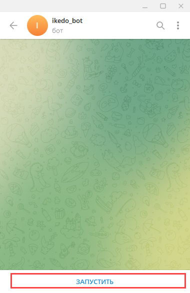 Откройте приложение Telegram и в диалоге с ботом нажмите кнопку Запустить: