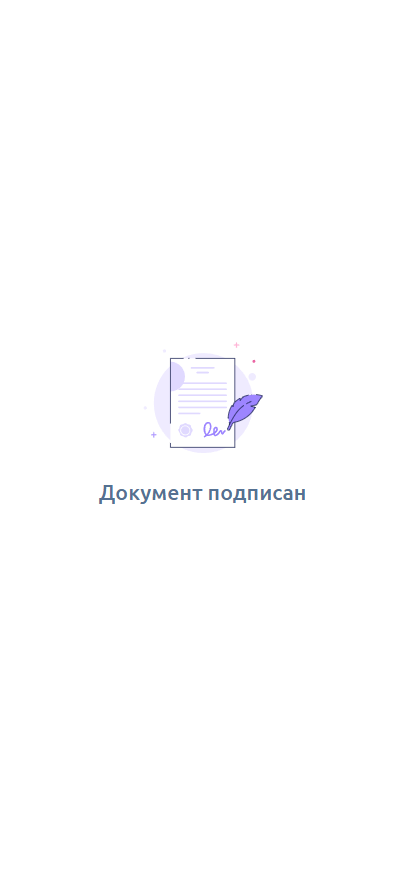 После нажатия кнопки Подписать отобразится сообщение об успешном подписании документа: