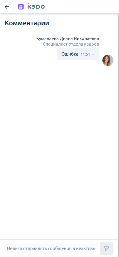 В открывшемся окне вы увидите комментарий, который оставил пользователь при отклонении документа:
