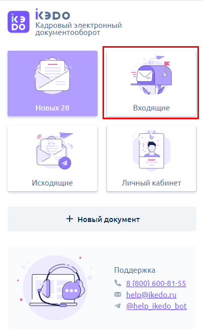 Чтобы открыть входящий документ, перейдите во Входящие:
