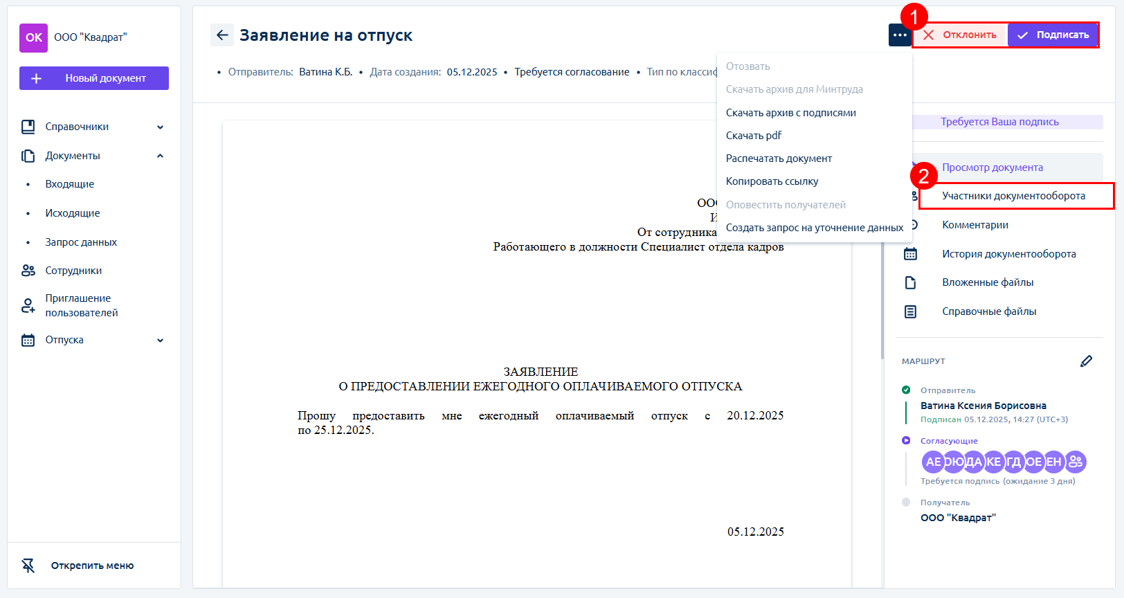 - посмотреть других участников документооборота (2):