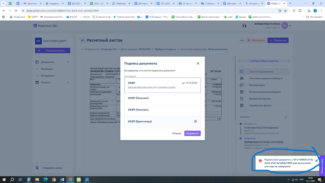 - Произошла ошибка при выполнении криптооперации над запросом к серверу СЭДО ФСС