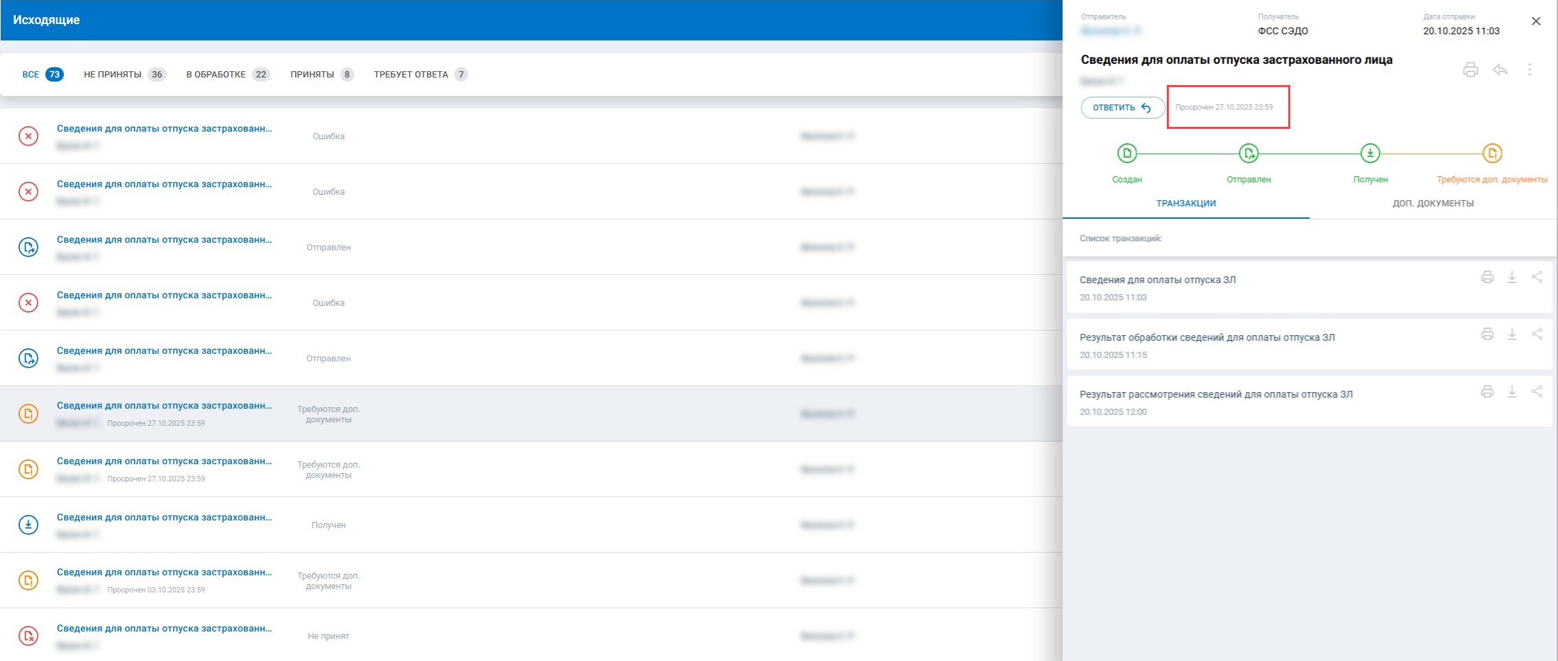 Счетчик с временем, до какого числа необходимо направить документы, будет отображаться в разделе и в детальной информации: