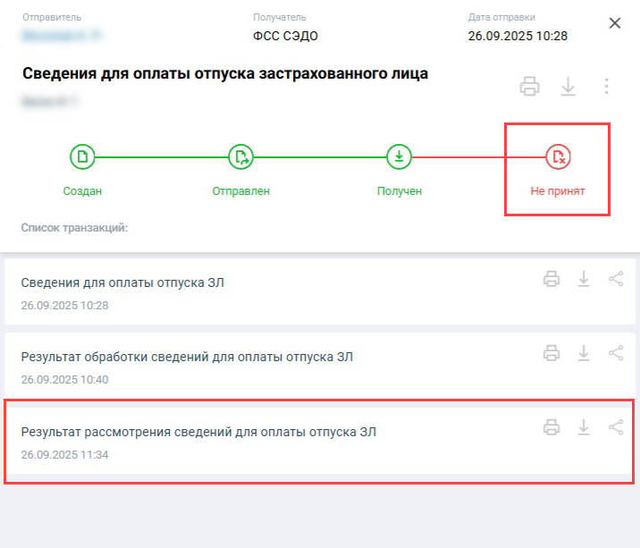 Если в ФСС был отправлен ответ на Запрос недостающих сведений, то скачайте результат обработки ответа на входящий запрос.