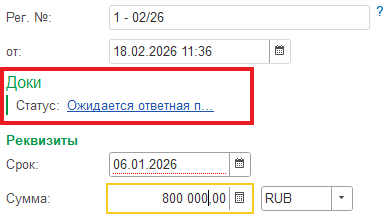 После создания документа в 1С, в интерфейсе Доки напротив него появится значок белого листа в столбце «1С». Двойной клик по этому значку откроет созданную карточку документа, где будут находиться оригинал полученного файла и его печатная форма со штампом: