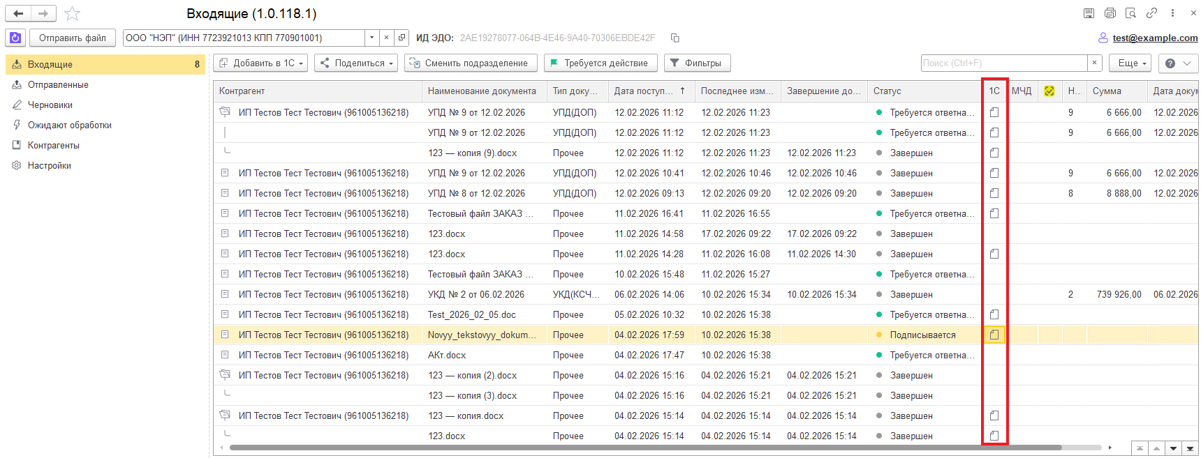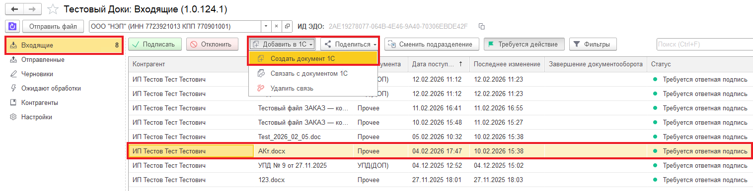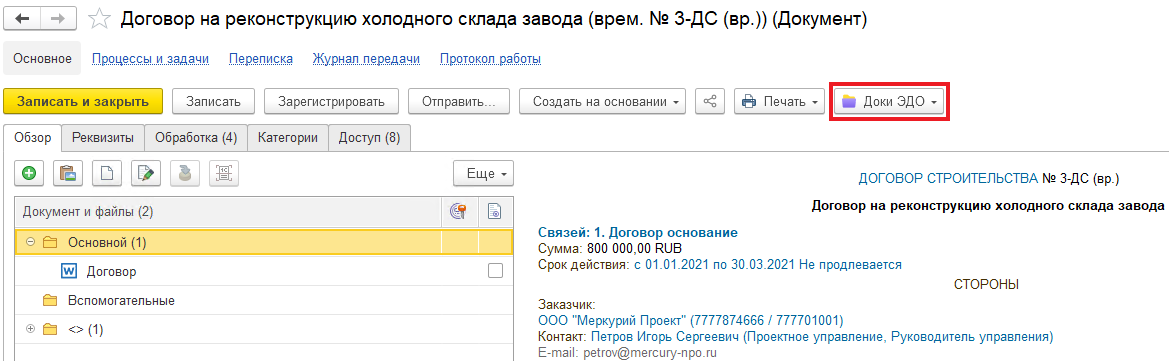 Статус электронного документа в карточке 1С изменится на актуальный: