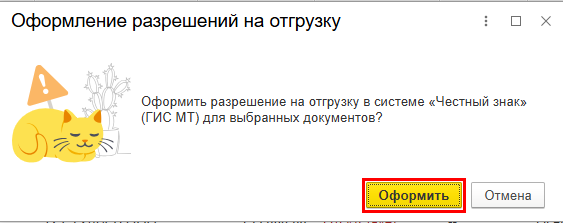 После отправки появится сообщение о статусе разрешения на отгрузку в ГИС МТ "Честный знак":