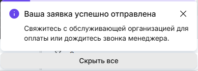 После нажатия кнопки Оставить заявку появится уведомление об успешной отправке: