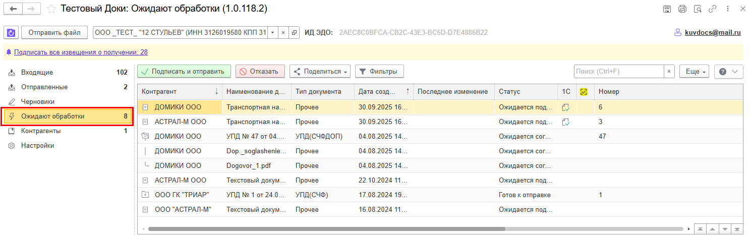 Для просмотра необработанных документов откройте реестр Доки ­→ Ожидают обработки: