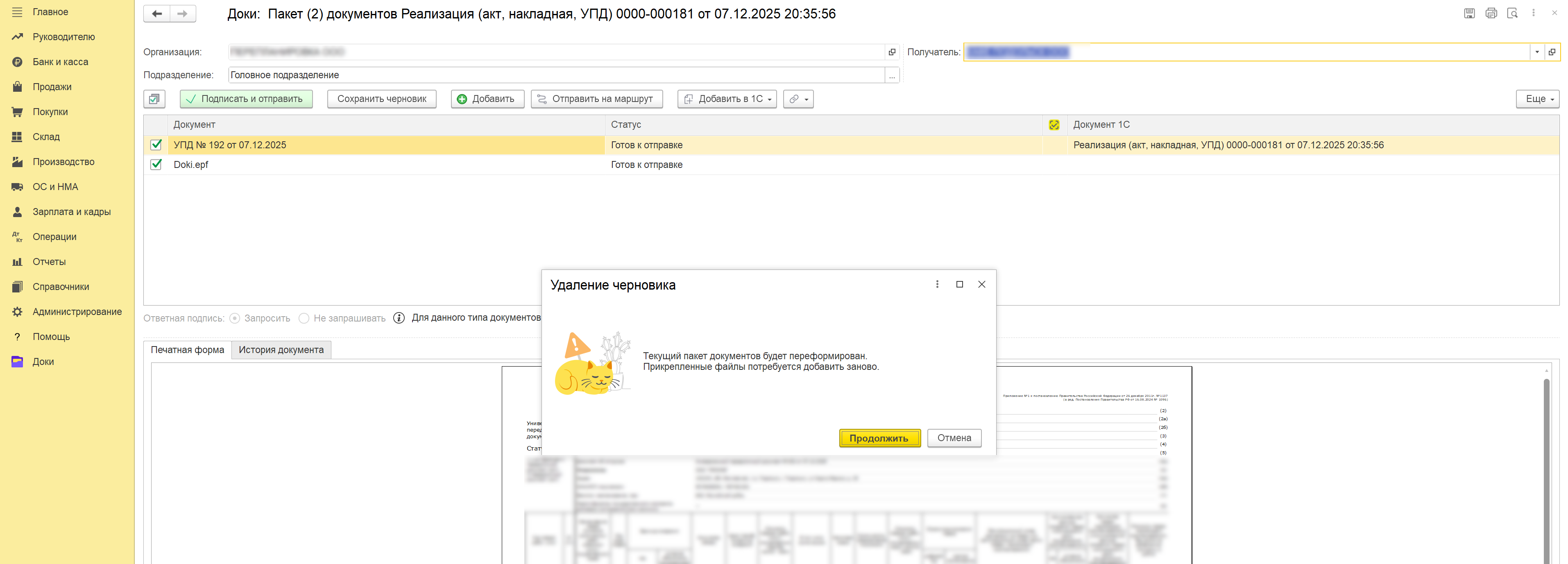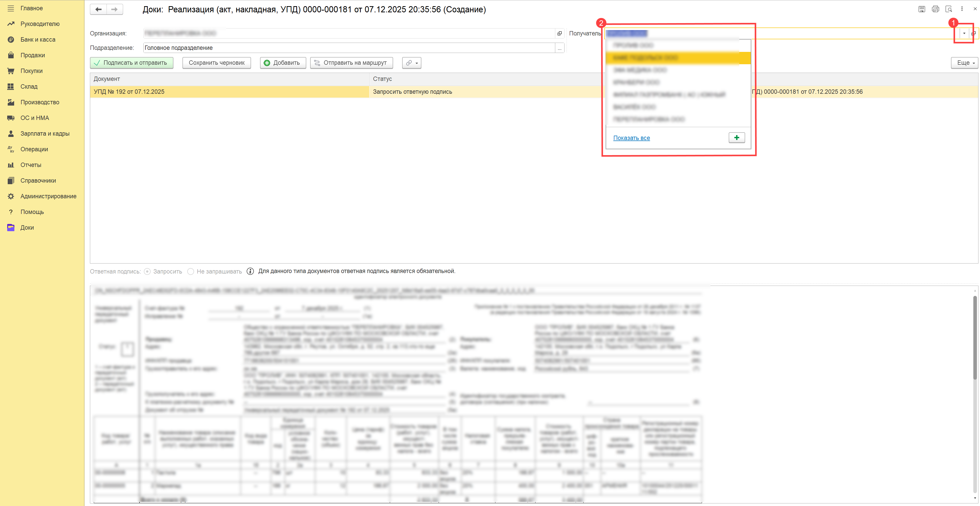 Доки: Отправка УПД иному получателю