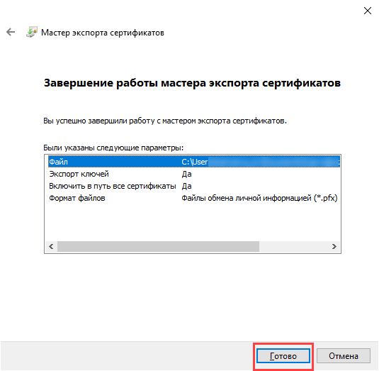 После всех действий по указанному пути будет находиться файл с расширением PFX.