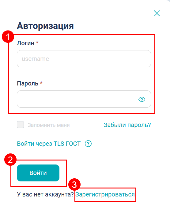 Если вы не зарегистрированы на сайте, перейдите к регистрации, нажав кнопку Зарегистрироваться (3):