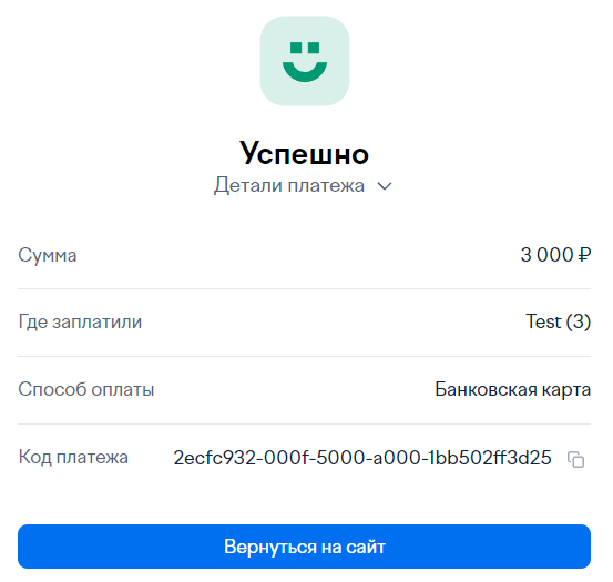 После успешной оплаты отобразится соответствующее сообщение. Для возвращения на сайт ЛК ОФД нажмите кнопку Вернуться на сайт: