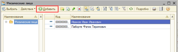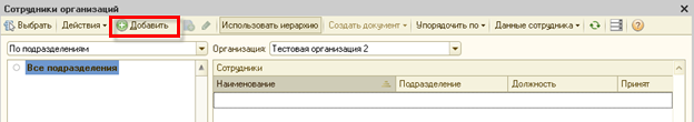 Если нужного сотрудника нет в списке, добавьте его нажав кнопку Добавить: