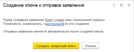 После генерации контейнера закрытого ключа отобразится сообщение об успешной отправке заявления.