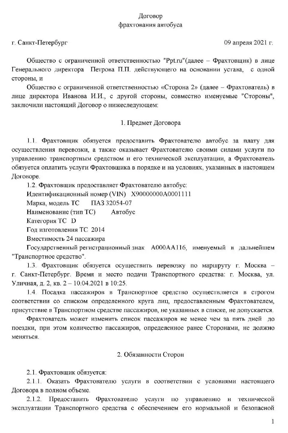 Договор фрахтования транспортного средства для перевозки пассажиров: что нужно знать