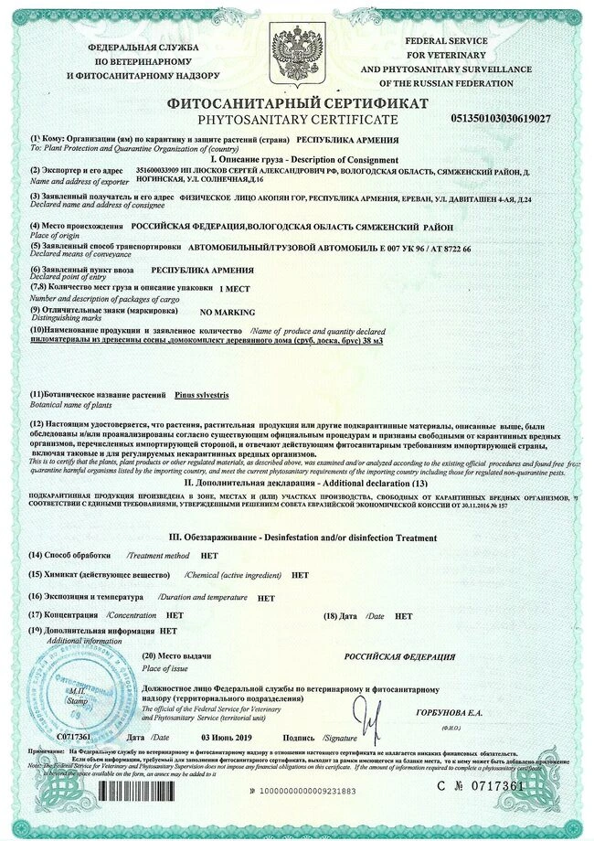 Фитосанитарный сертификат