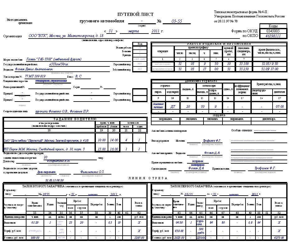 При оформлении путевого листа придерживайтесь следующего алгоритма