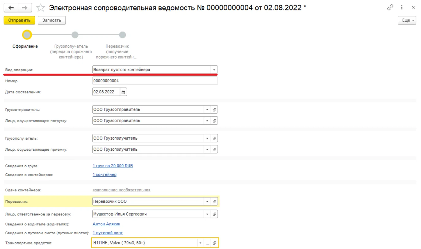 Ведомость подтверждает, что грузоотправитель и грузополучатель выполнили свои обязанности: поставщик загрузил продукцию в пустой контейнер и передал его перевозчику, а покупатель получил контейнер от перевозчика и разгрузил тару. Если контрагенты распределили эти обязанности по-другому, информацию об этом нужно добавить в договор.