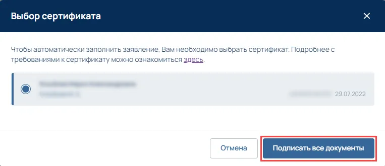 Чтобы подписать заявление на выдачу сертификата УКЭП: