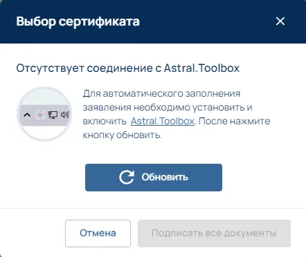 - Если плагин Astral.Toolbox не установлен на ПК, появится соответствующее уведомление.